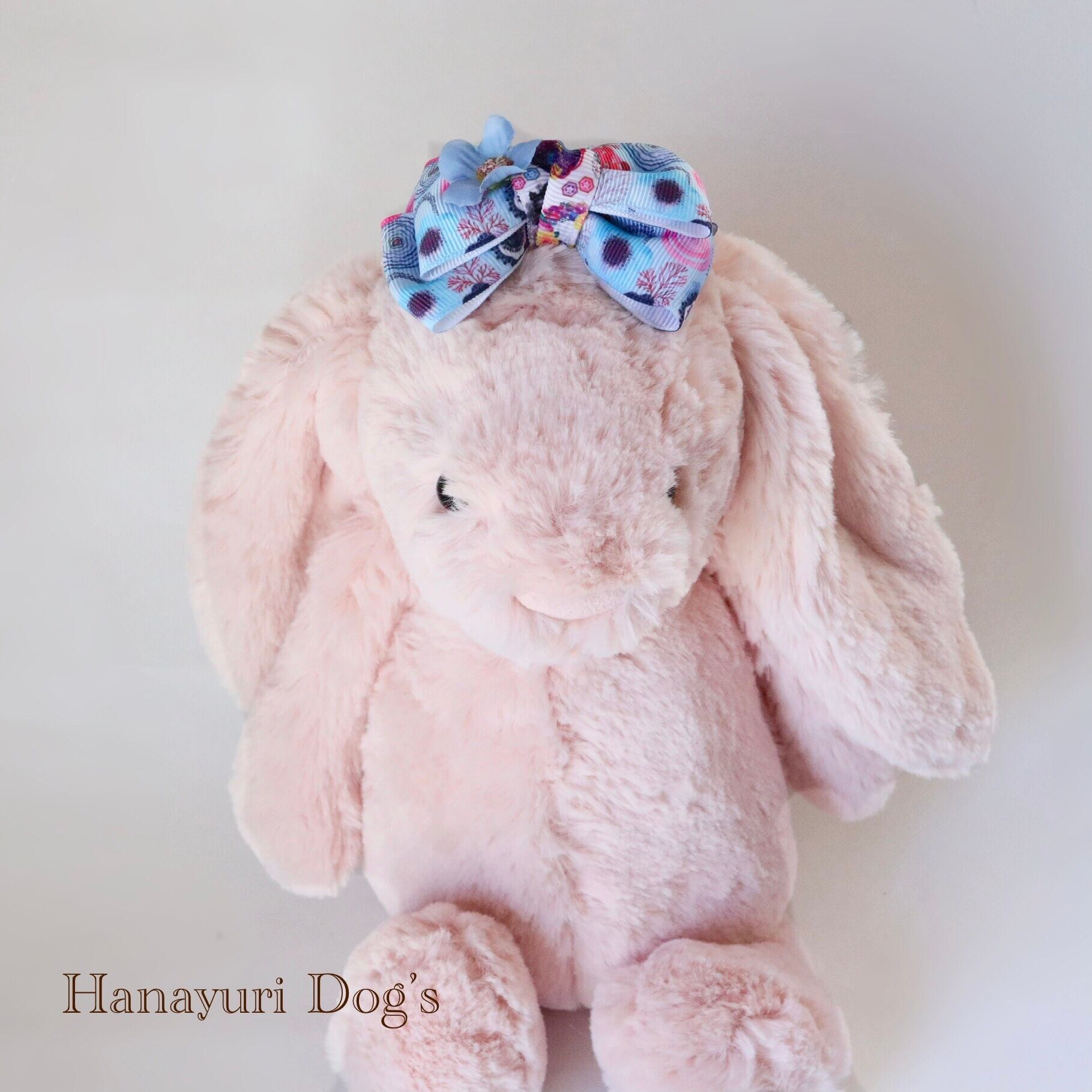 細く薄いバレッタはリボンの浮きが少なく見栄え良く、しっかり留まるので人間用にも最適です。髪の結び目の上などの飾りとして活躍します。