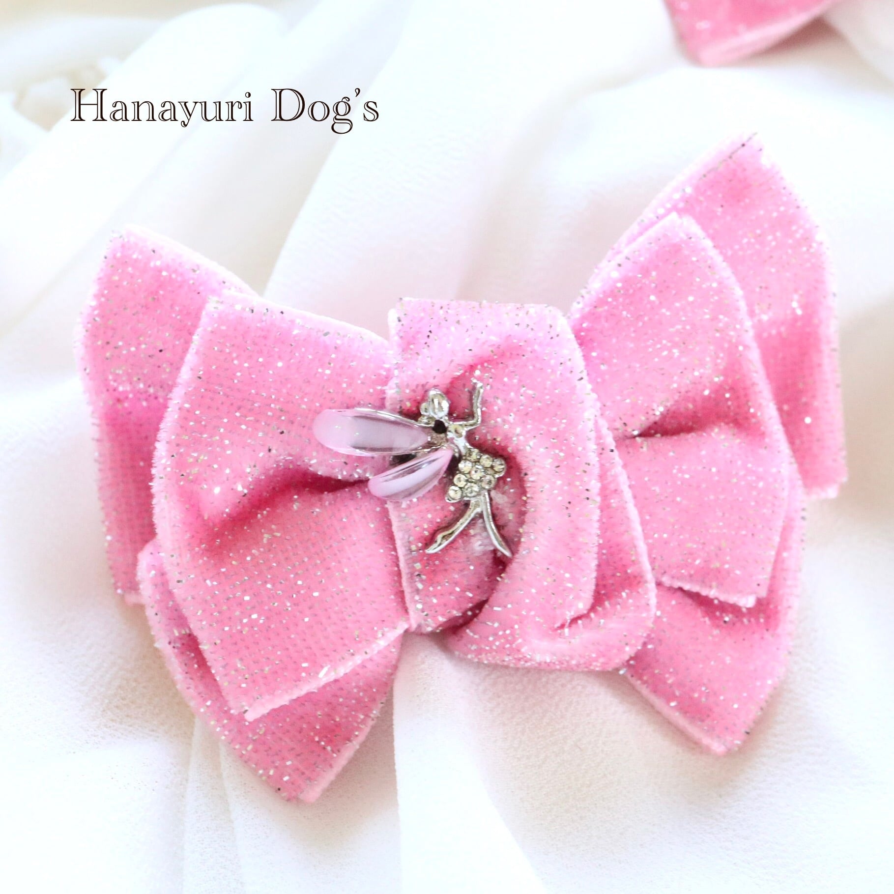 フェアリー 妖精 ラメ入りベルベット ピンク 小 犬リボン キッズ・子供リボン 猫 ペット ヘアアクセサリー 髪飾り 普段着 うちの子記念日 誕生日 プレゼント 撮影 | Hanayuri Dog’s