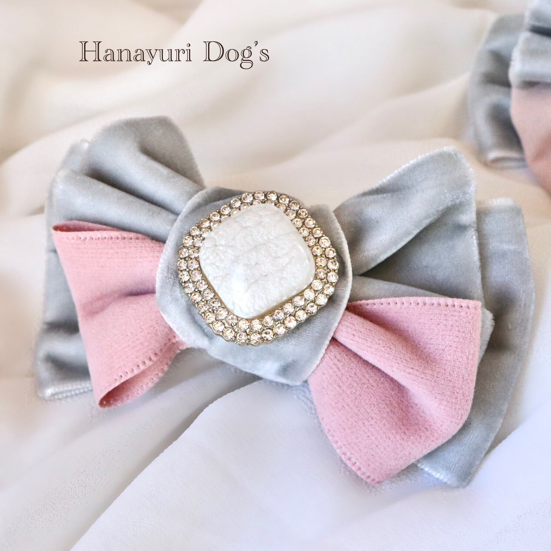 バイカラー グレー×ピンク ベルベット スエード アクセサリー ウェディング 結婚式 犬リボン キッズ・子供リボン 七五三 猫 ペット ヘアアクセサリー 髪飾り 普段着 うちの子記念日 誕生日 プレゼント 撮影 | Hanayuri Dog’s