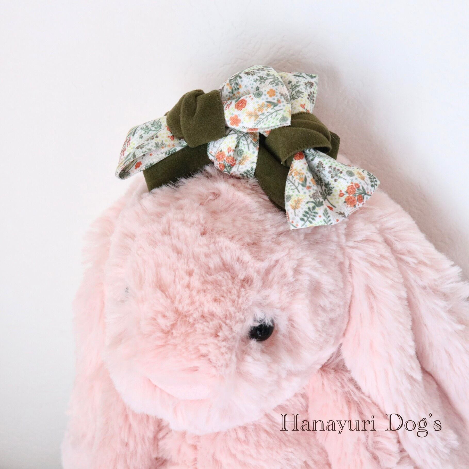 モスグリーンのスエードりぼんと合わせたナチュラルシックな装いです。
