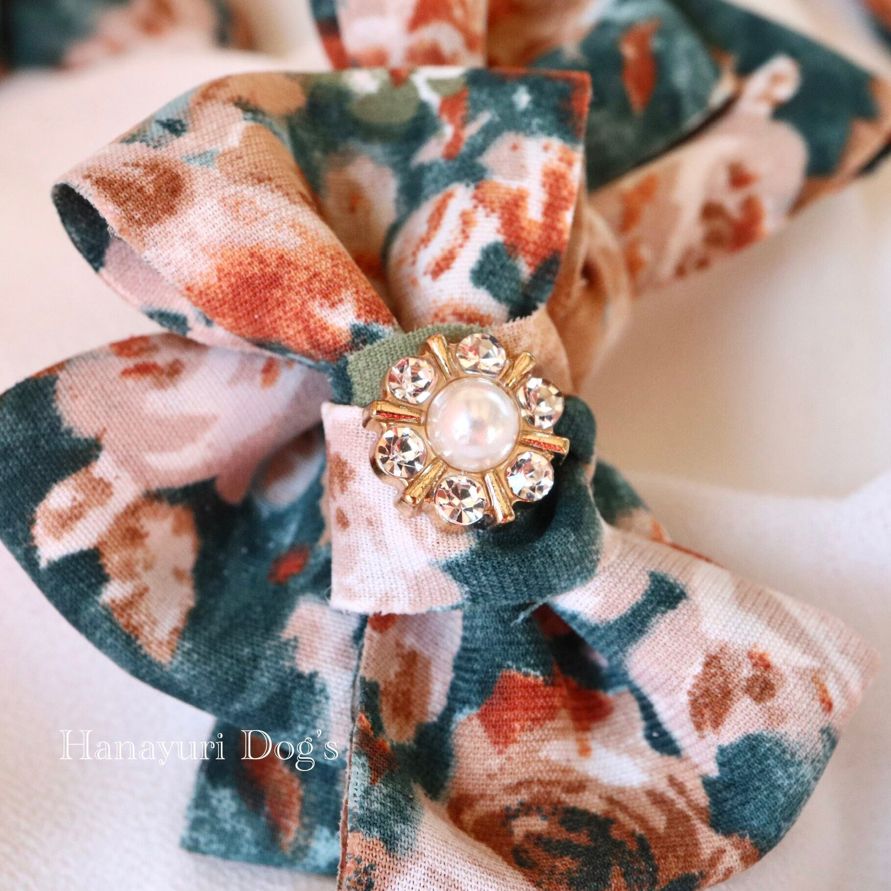 ビンテージ クラシカルリボン グリーン パールビジューNo.1 犬リボン バレッタ キッズ・子供リボン 猫 ペット ヘアアクセサリー 髪飾り 普段着 うちの子記念日 誕生日 プレゼント オフ会 撮影 | Hanayuri Dog’s