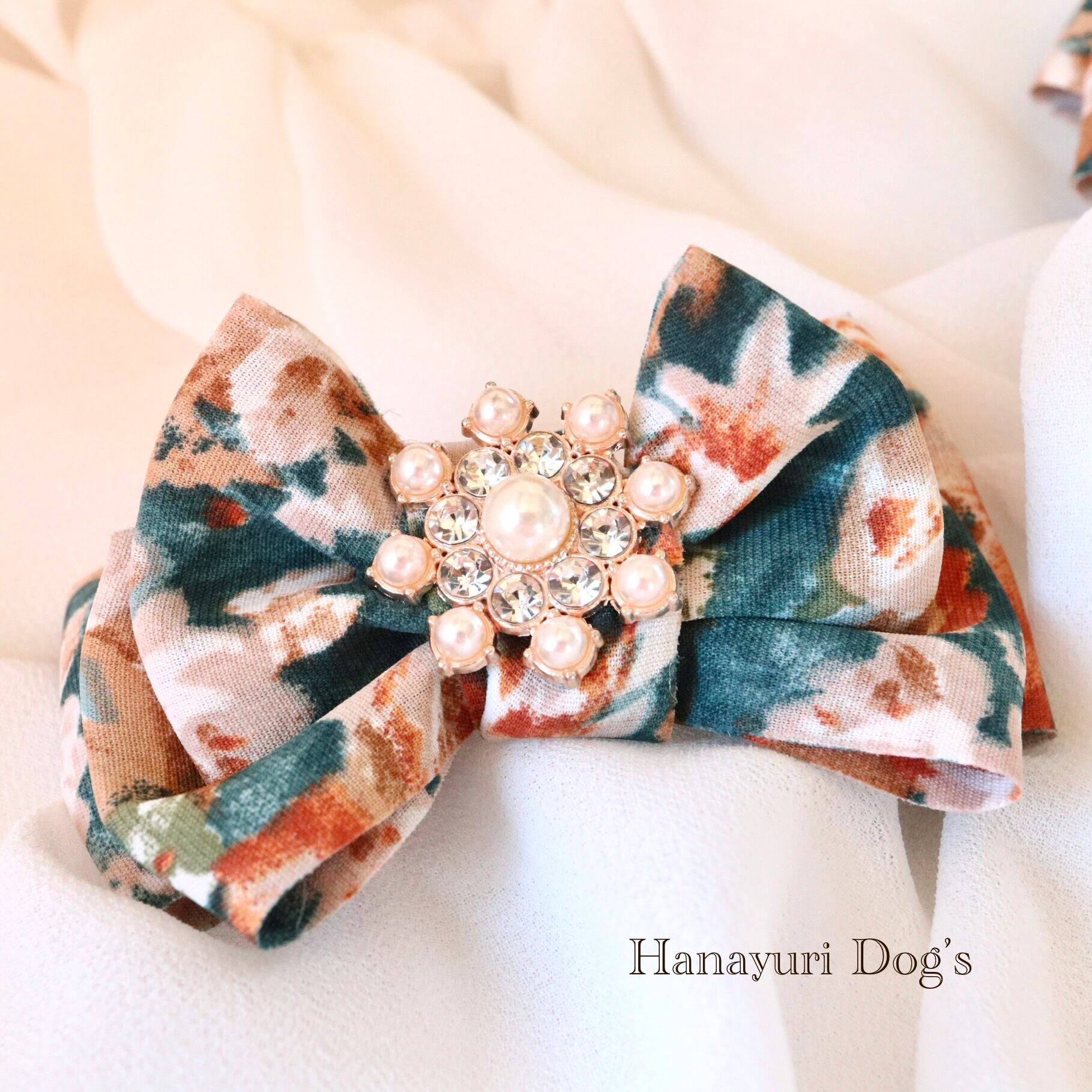 ビンテージ クラシカルリボン グリーン パールビジューNo.2 犬リボン バレッタ キッズ・子供リボン 猫 ペット ヘアアクセサリー 髪飾り 普段着 うちの子記念日 誕生日 プレゼント オフ会 撮影 | Hanayuri Dog’s