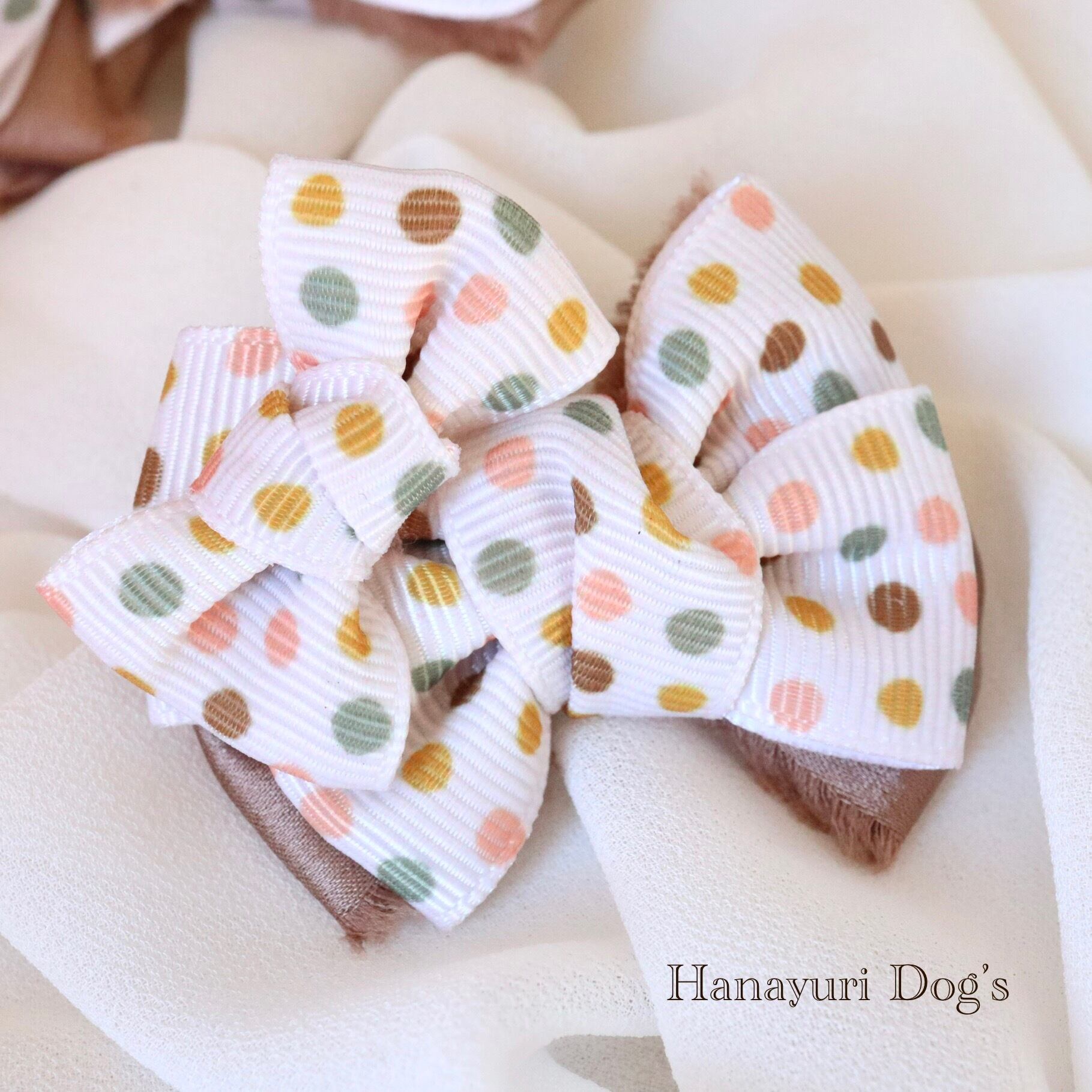 レトロドットNo.1 犬リボン バレッタ キッズ・子供リボン 猫 ペット ヘアアクセサリー 髪飾り 普段着 うちの子記念日 誕生日 プレゼント オフ会 撮影