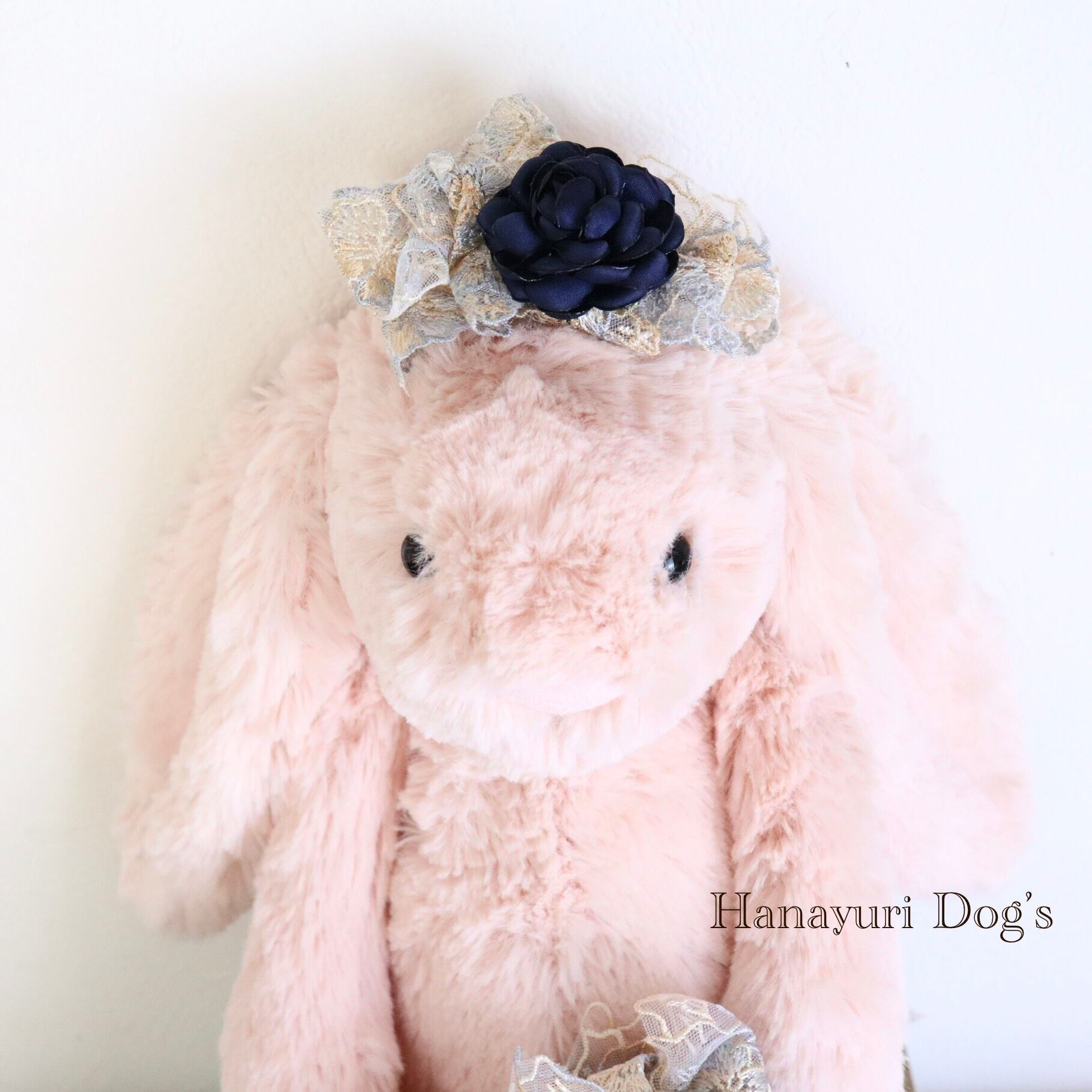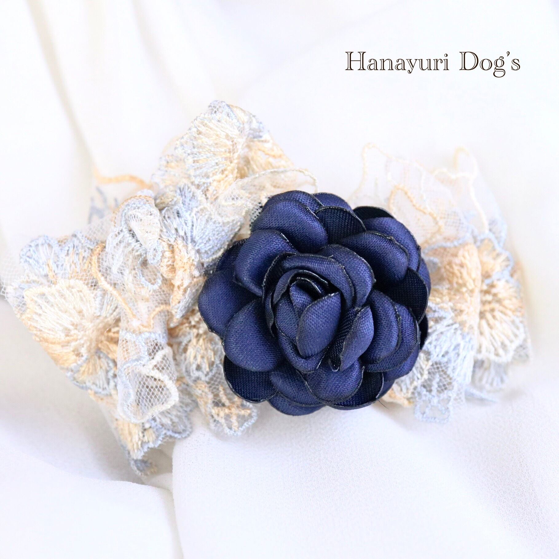 中央にはネイビーの布花を添えて大人っぽい雰囲気に仕立てました。