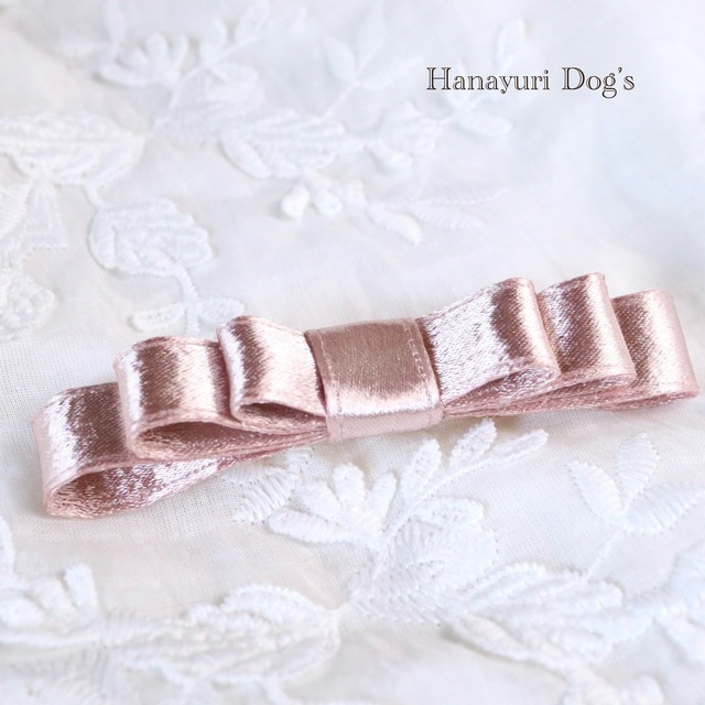 細身のストレートラインがシンプルだけど新鮮。 優しいピンクにメタリックな輝きが個性を感じるバレッタリボンです。 長めの姿がリボンカチューシャのようにも見えて華やかさがございます。 しっかりした上質の生地でオールシーズンお楽しみいただけます。 バレッタはフラットタイプを使用しています。 仕様バレッタ:特許取得の日本製、毛が絡まりづらく取り外しの際痛くない、わんこのプルプルにも耐えるしっかり固定、安心プラスチックバレッタを使用しています。 バレッタのサイズは4cmです。 お子様、女性の着用で悩まれているお客様。 小さなバレッタです。サラサラの髪などの場合、結び目の上などにご使用いただくとしっかり留まります。 リボンの着用写真を募集しています。 インスタグラムに掲載いたしますのでぜひぜひ、可愛いお写真をお寄せください。 楽しみにお待ちしています。 サイズ 約1、5×9、5㎝ 重さ約4g 小さなぬいぐるみの頭の大きさは約8センチです。 サイズの参考になさってください。 サロン他、他店でも販売しています。 タイミングにより売り切れになることもございますのでその際はご容赦願います。 定形外郵便は保証、追跡、土日配送がありません。 保証、追跡、土日配送ありのゆうパケットポストをご検討くださいませ。